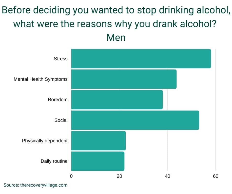 - Women were 17% more likely to say they drank for recreational or social reasons.