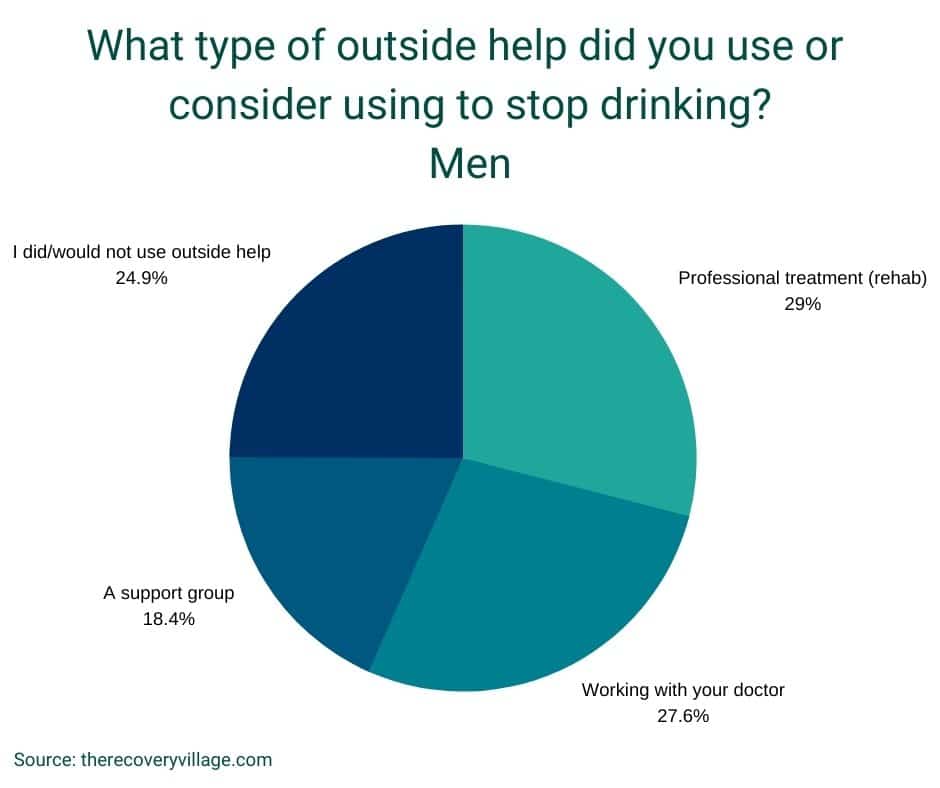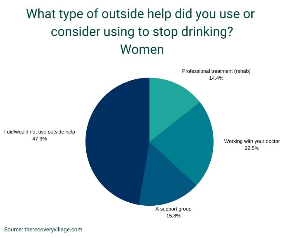 - Women were 112% more likely to say they did not or would not consider using outside help to quit drinking.