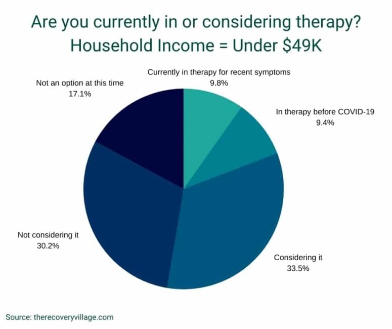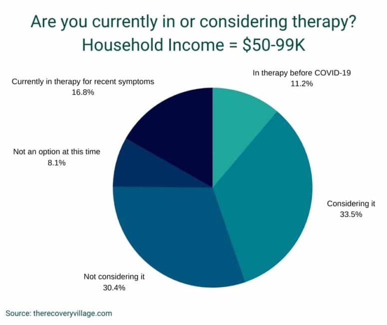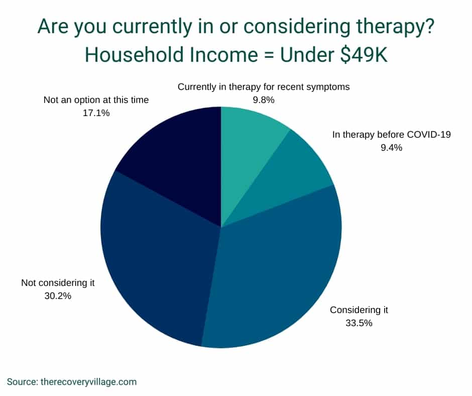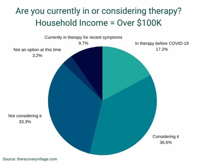 - 17.2% of high income households were in therapy prior to the COVID-19 outbreak versus just 9.8% and 11.18% of lower and middle income households.