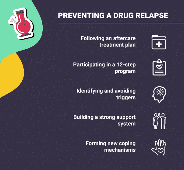 - Avoiding triggers, having a strong support system, and following an aftercare treatment plan can help you prevent a drug relapse.