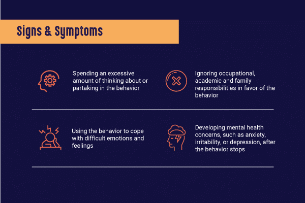 Some of the most common symptoms of process addiction include: