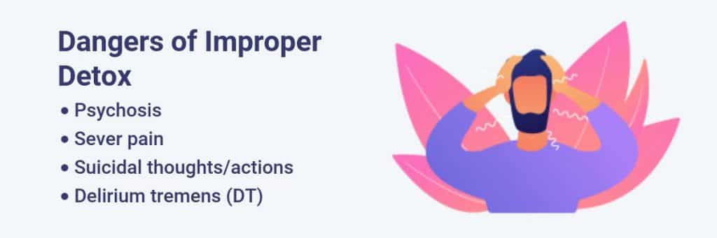 A person with a substance use disorder may have serious withdrawal effects if they try to quit too abruptly or on their own. The dangers of detox can range from physical symptoms to psychological symptoms. If a person experiences severe psychological symptoms, it could lead them to want to harm themselves. It is usually better to work with a medical professional to develop a drug detox plan and have supervision during the process.