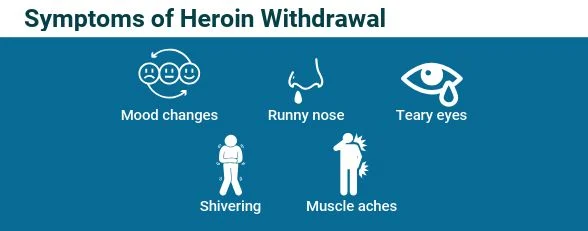 - After initially stopping heroin, terrible flu-like symptoms are common, such as runny nose and muscle aches.