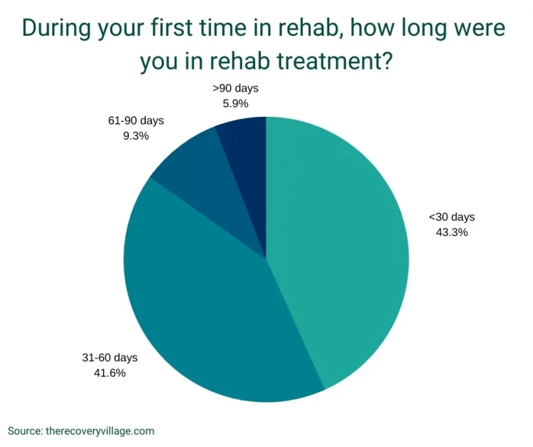 Rehab programs also vary in length. For example, outpatient programs generally last longer than inpatient care but are less intensive. Among those surveyed, 4 out of 5 spent less than two months in rehab (85%).