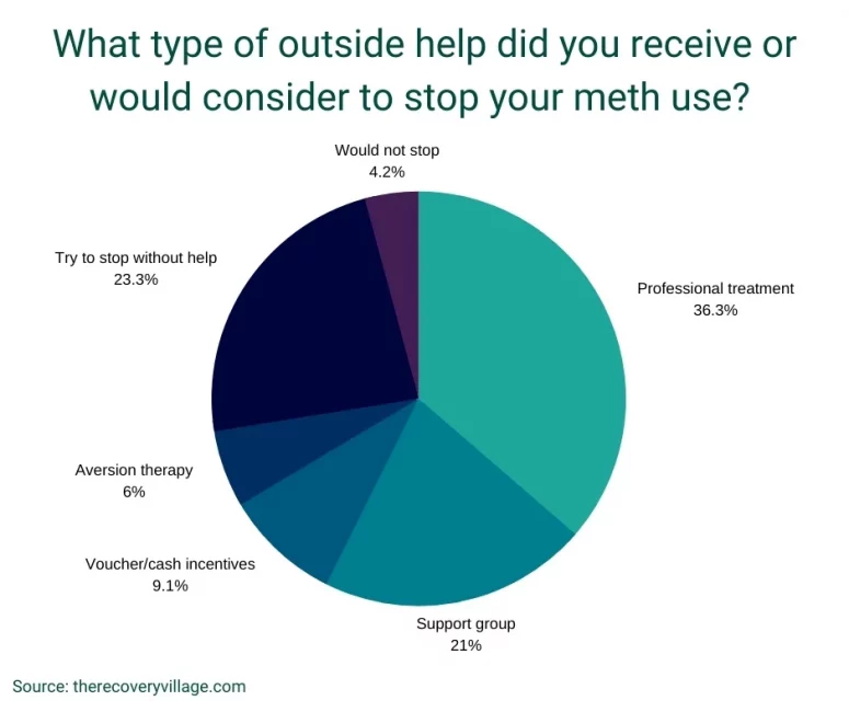 If you or a loved one is struggling with meth use, there are a multitude of resources available. Roughly 3 in 4 people using meth (73%) seek outside help for their substance use. Heavy meth users are more likely to choose rehab over other treatment options: 51% of heavy meth users choose rehab, compared to 36% of all participants.