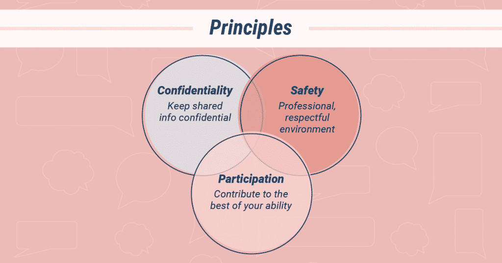 Group therapy work usually involves sharing substantial personal information — some of which may feel embarrassing or seem unappealing. To help keep the environment safe, there are principles of group therapy which govern its use and ethics. The most important of those are: