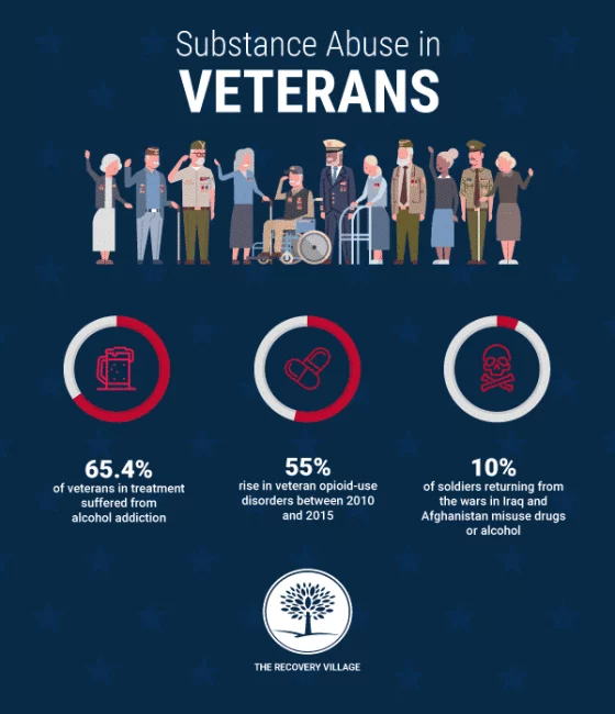 Studies show that there is a strong relationship between PTSD and substance use disorders in veterans. The following are some veterans and substance abuse statistics, according to the U.S. Department of Veterans Affairs:
